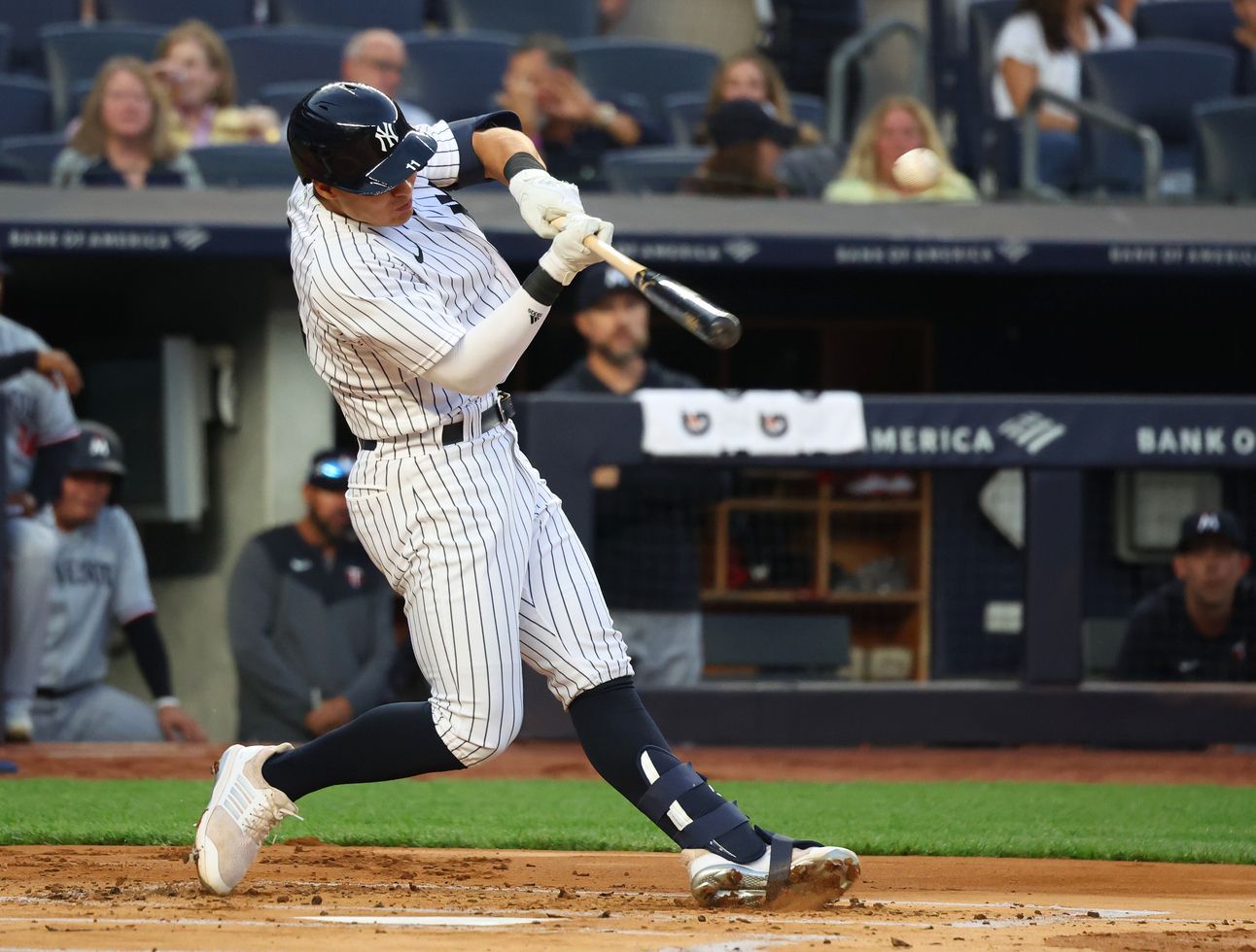 ➤ The offense jumped on Minnesota starter Chris Paddack for four quick runs. Volpe got it started with a single, took third on a Soto single and scored on a Judge grounder. With two outs, Giancarlo Stanton hit an RBI single, then Anthony Rizzo doubled and Gleyber Torres delivered a two-run double that just went off right-fielder Manuel Margot’s glove on the right-field line. It was very similar to the rather lucky two-run double to the same spot hit by Judge on Tuesday.