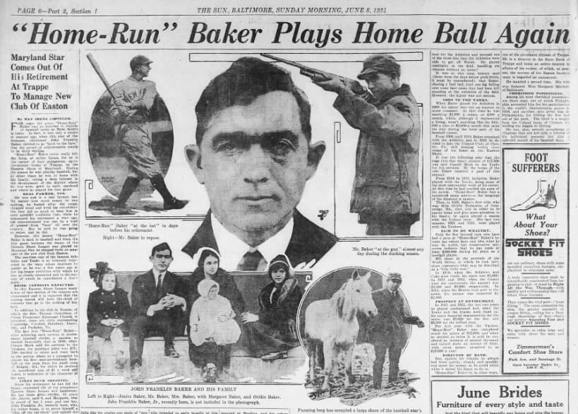 Baker stayed with the A’s through 1914, but Mack began selling off his key players because the franchise was short on cash, and Baker didn’t appreciate the dismantling of a championship club. He was locked into a three-year contract and when he tried to renegotiate a higher salary, Mack refused. So at the age of 29, Baker decided to quit baseball and he headed home to Maryland where in 1915 he played for his local town team.