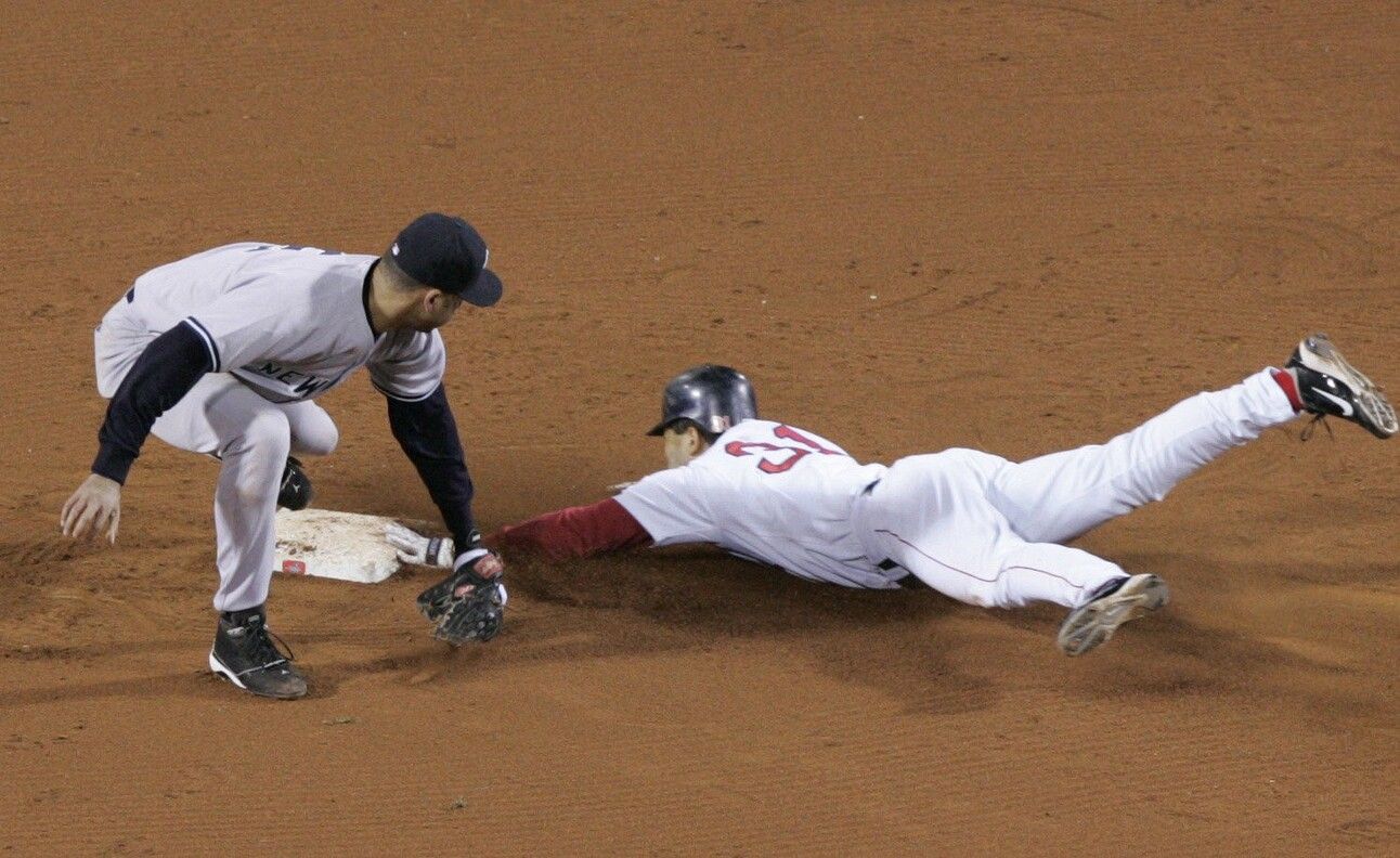 Dave Roberts narrowly beats the tag of Derek Jeter and moments later he scored the tying run in Game 4 of the ALCS.