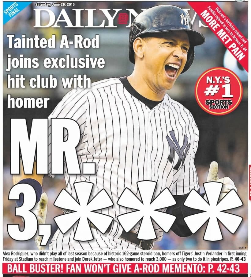 ➤ June 19, 2015: After been suspended for the entire 2014 season, Alex Rodriguez’s bid to reach 3,000 hits was delayed, but on this day he finally became the 29th major leaguer to reach that plateau when he hit a first-inning solo home run off Detroit ace Justin Verlander which started a 7-2 Yankees victory in the Bronx.