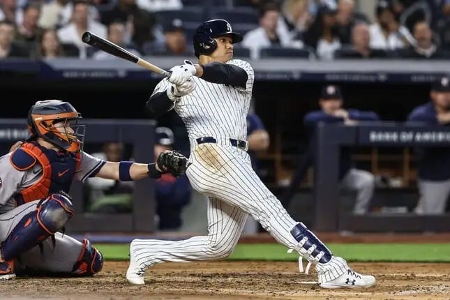 Soto and Judge each went 3-for-5 with a homer, Soto drove in five runs and Judge three, and Giancarlo Stanton hit a scary 119.9 mph missile to left for a homer as the Yankees beat up on the shockingly inept Astros for the second night in a row. That’s six straight wins this year over their perennial nemesis and ninth straight dating back to last season. Fun times indeed.